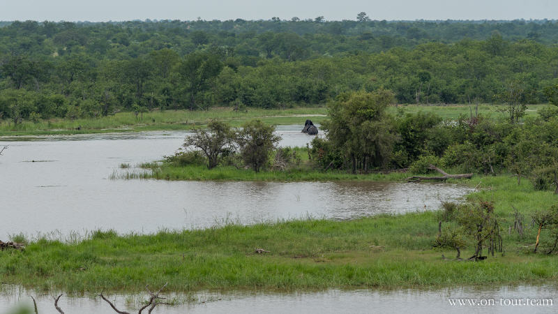 Es macht einen ziemlich großen Unterschied, zu welcher Jahreszeit man nach Südafrika reist. Bisher waren wir immer im September/Oktober (= Frühling) oder Juni (= Winter) unterwegs. Zum einen ist es im Winter insbesondere morgens und abends sehr frisch (können schon mal Richtung 0 Grad tendieren) und tagsüber sind die Temperaturen sehr angenehm (ca. 25 Grad). Jetzt, im März (= Spätsommer) ist es wesentlich wärmer: tagsüber 30-38 Grad und abends noch immer gut 20 Grad. Weiterhin sind die Bäume und Büsche sehr dicht und das Gras sehr hoch. Oftmals müssen wir lange suchen, um die Tiere zu entdecken. Wir haben gottlob einen SUV angemietet, so dass wir den Vorteil einer höheren Sitzposition haben. Mit einem Kleinwagen möchten wir hier ungern unterwegs sein.